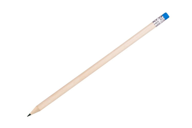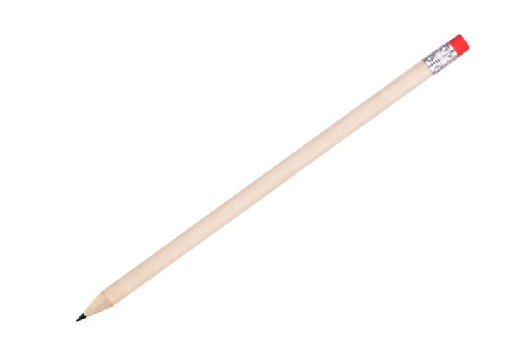 ZAOSTRZONY OŁÓWEK HB Z DREWNA LIPOWEGO W NATURALNYM KOLORZE Z KOLOROWĄ GUMKĄ